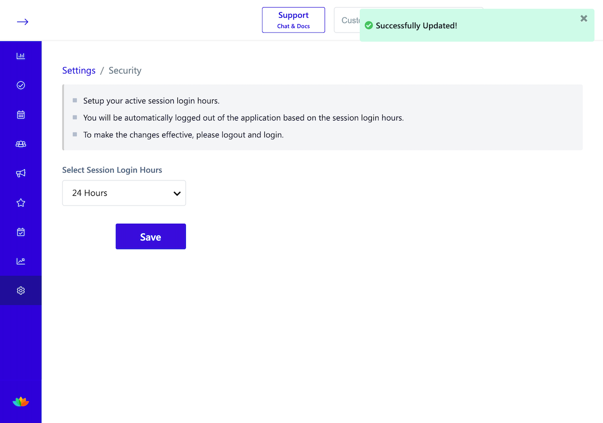5. The Session Login Hours are updated successfully.