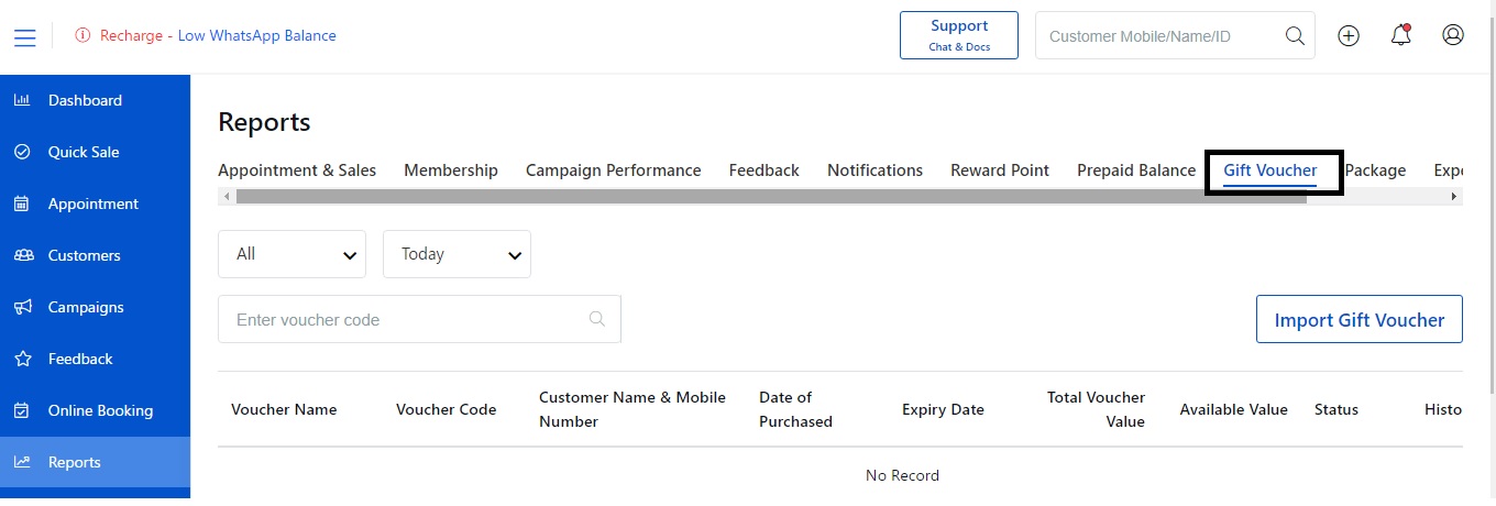 2. Select the Gift Voucher from the top label.