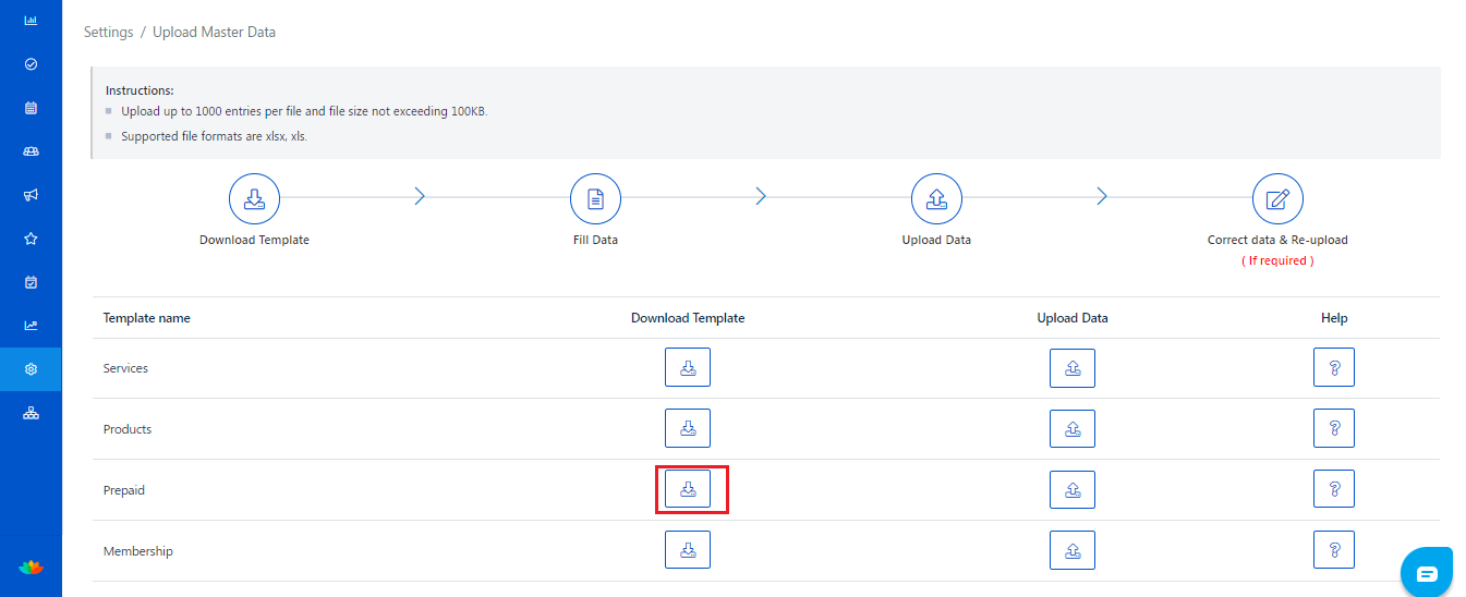 Upload the filled Excel file by clicking the “Import prepaid ” button to upload the Excel sheet.