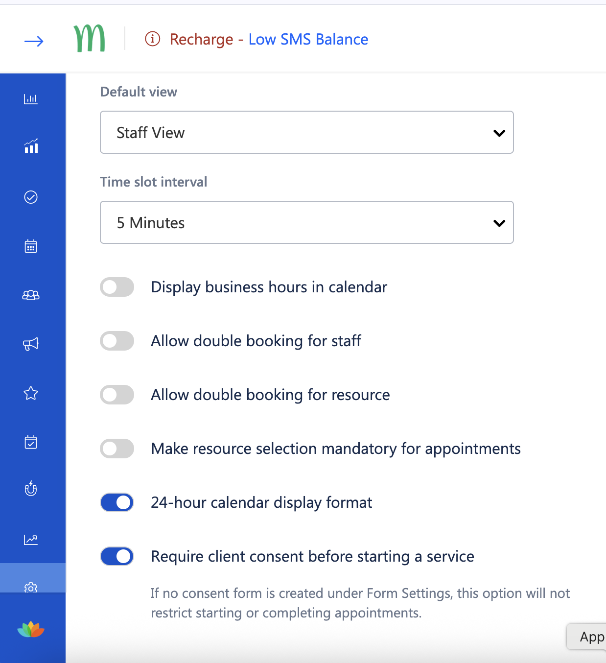 Once enabled, the selected format is reflected consistently across the appointment calendar.