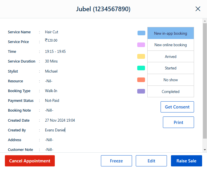 4. Click on the appointment, in the appointment detail popup, click on the Cancel Appointment button.