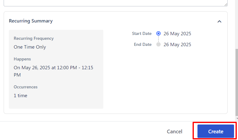 Check the Recurring Summary and click on Create. Block time will be successfully created for a day.