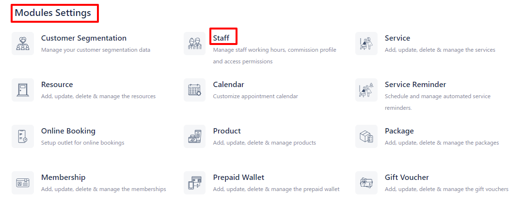 Navigate to Module Settings and click on Staff.