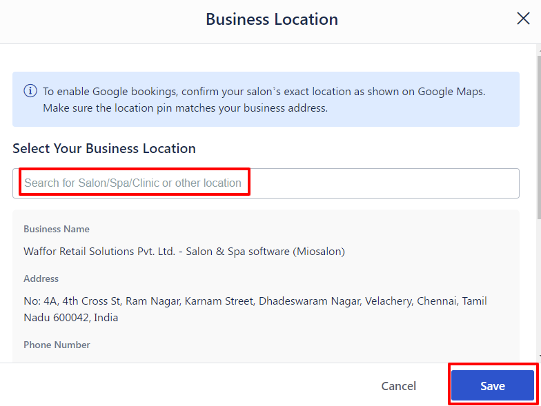 Your business name, address, and phone number (NAP) in MioSalon must exactly match your GBP details.