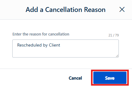 Type your reason in the text box (e.g., No-show, client cancelled).