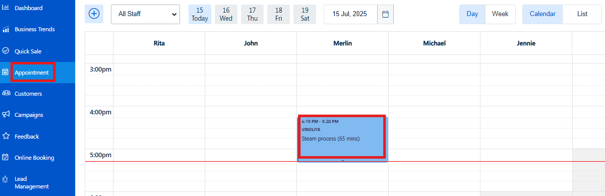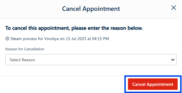 Step 3: Use a Preset Reason While Cancelling an Appointment